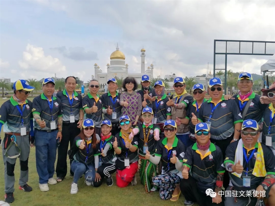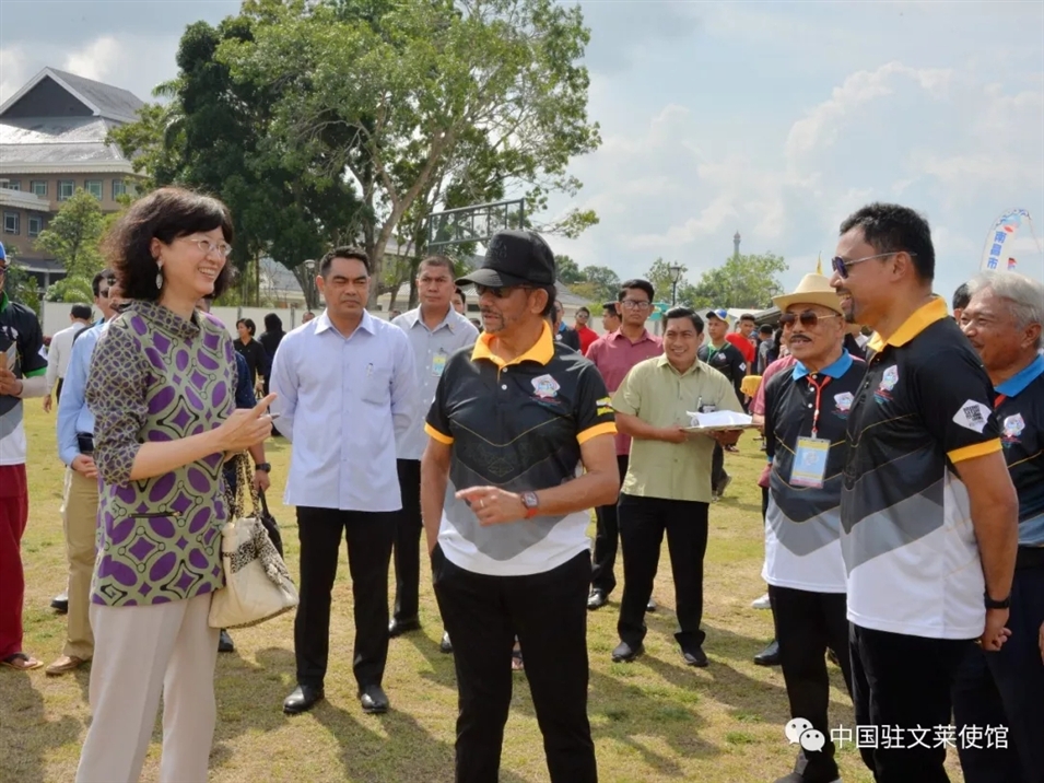 3月17日,于紅大使應邀出席文萊首屆國際風(fēng)箏節開(kāi)幕式。于紅大使在開(kāi)幕式前看望中國選手,為他們加油鼓勁。于紅大使還陪同文萊蘇丹、王儲等王室成員和中國選手交流。
